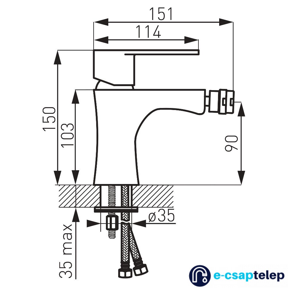 - csaptelep típusa: egykaros, álló, bidé csaptelep