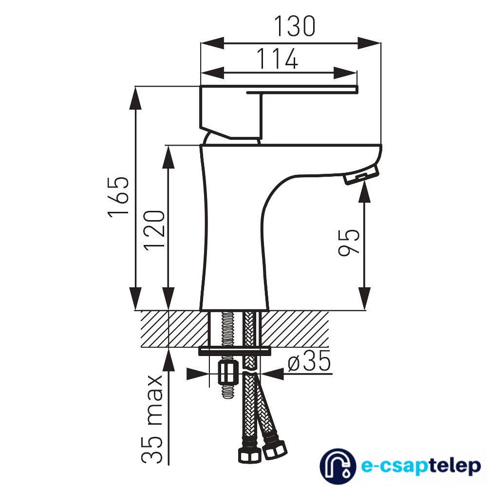 - csaptelep bekötése: flexibilis bekötőcső G3/8-M10x1