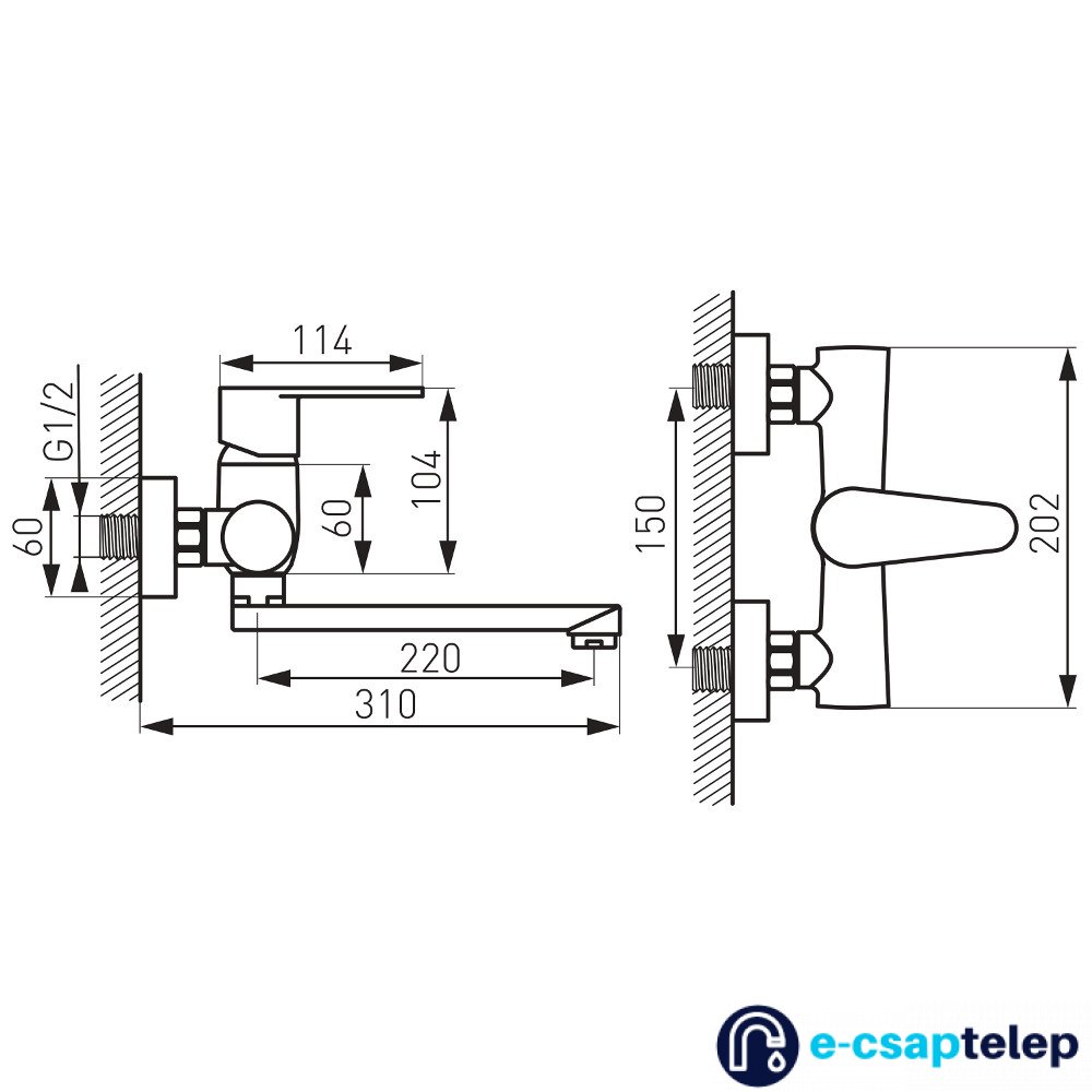 - csaptelep típusa: egykaros fali mosogató csaptelep