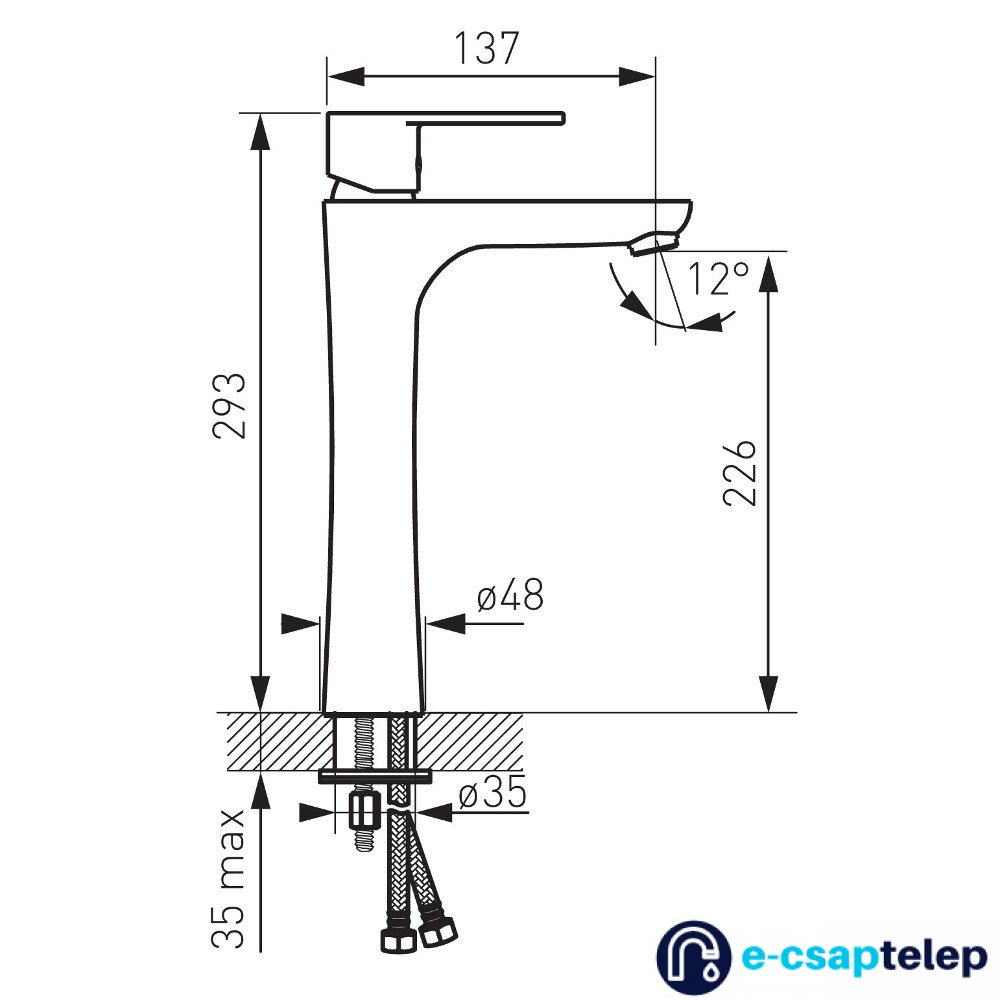 • csaptelep bekötése: flexibilis bekötőcső G3/8-M10x1