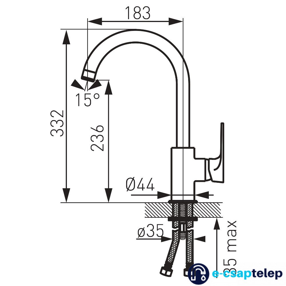 - csaptelep típusa: egykaros álló moogató csaptelep