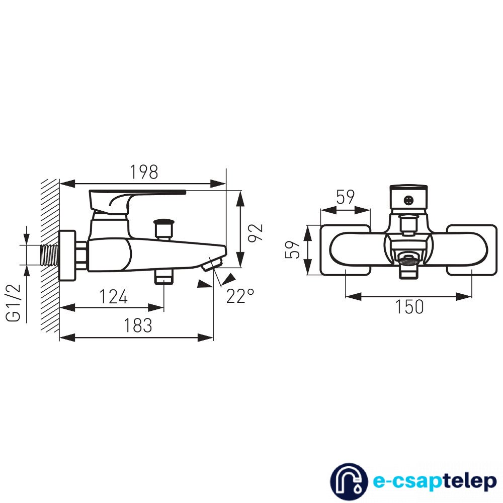 - csaptelep típusa: egykaros fali kád csaptelep
