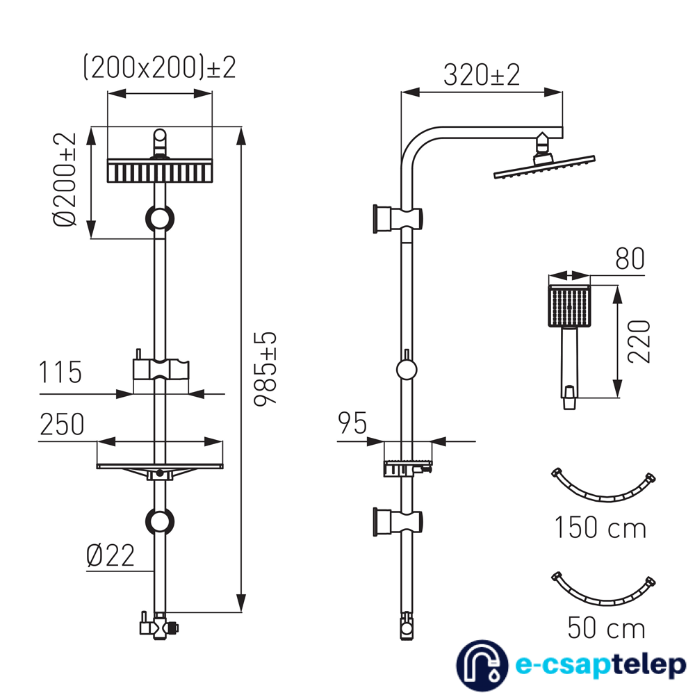 - fejzuhany mérete: 200x200 mm