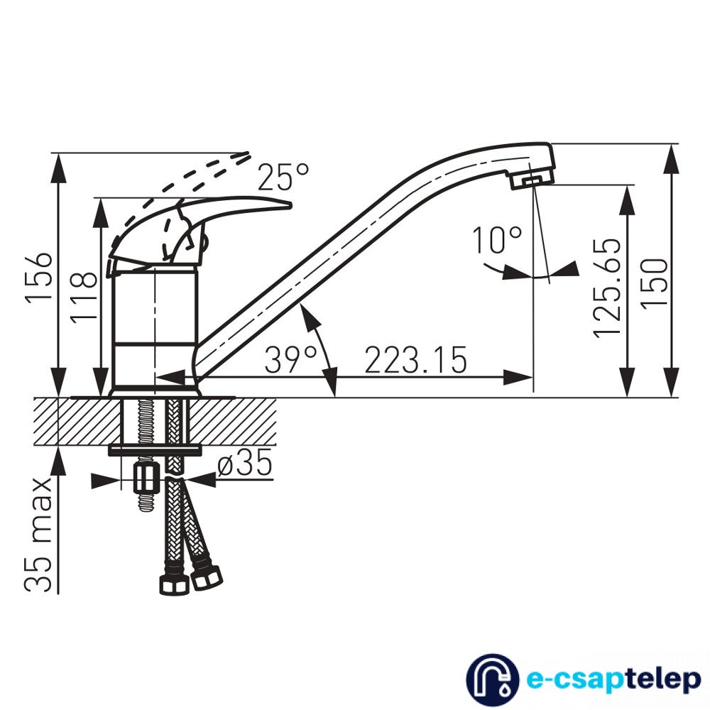 - csaptelep típusa: egykaros álló konyhai csaptelep