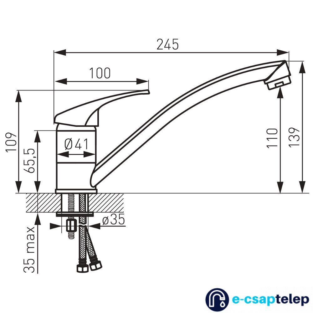 • csaptelep típusa: egykaros álló konyhai csaptelep