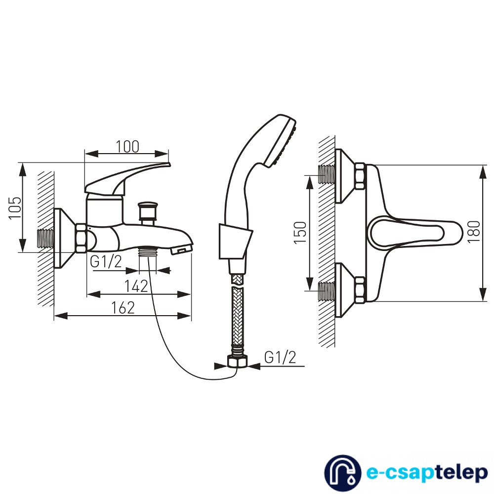 A csaptelep fali tartós zuhanyszettet tartalmaz!
