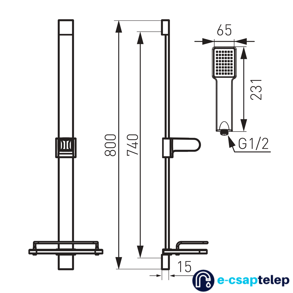 - fém zuhanyrúd állítható zuhanytartóval (hossza: 800 mm)