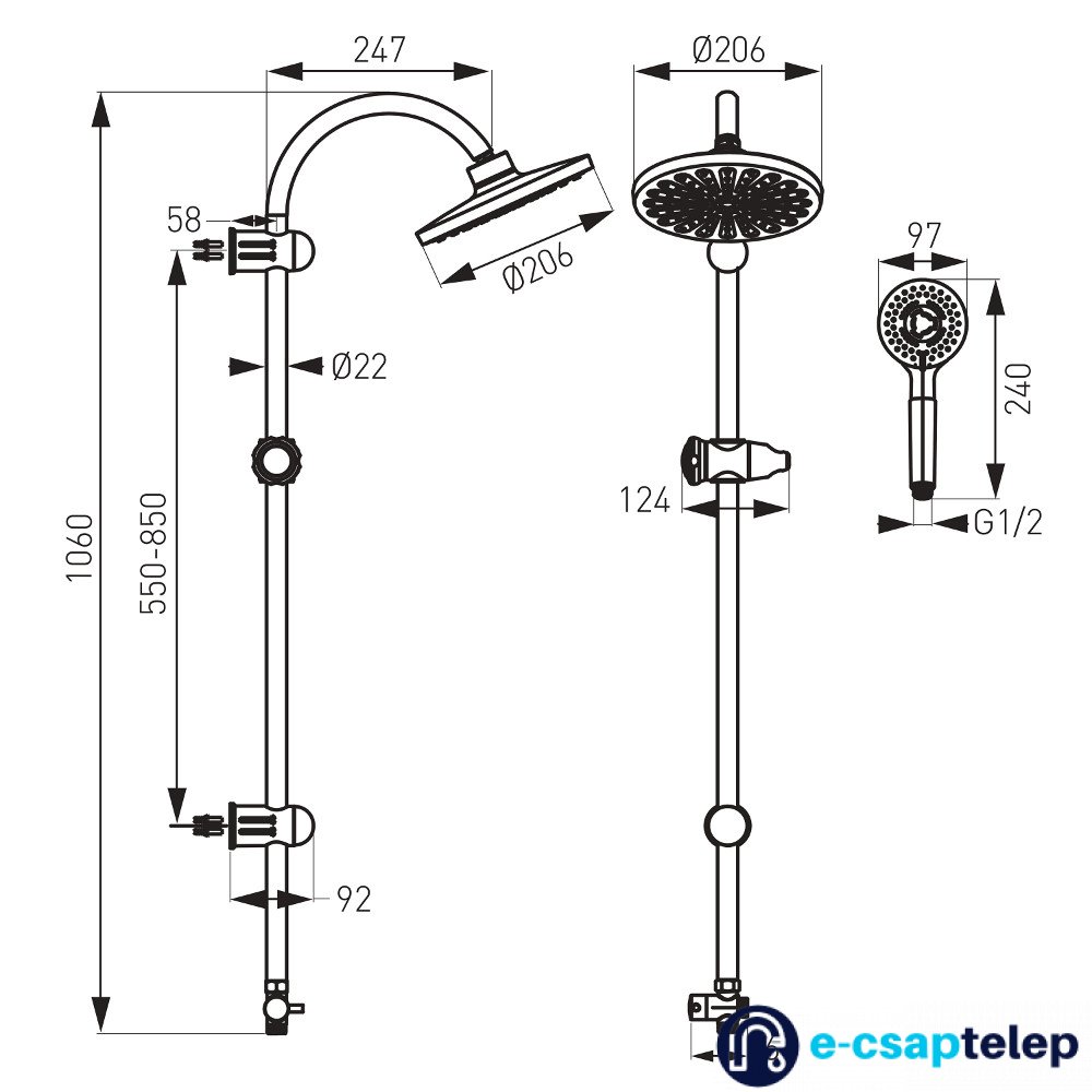 - Kézi zuhany átmérője: 100 mm