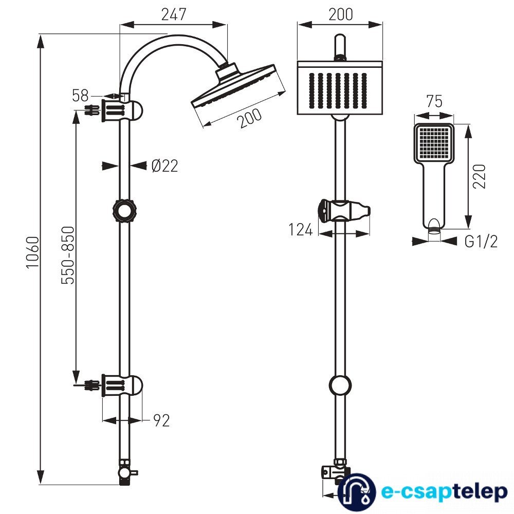 - Felső zuhanyfej mérete: 200 x 200 mm