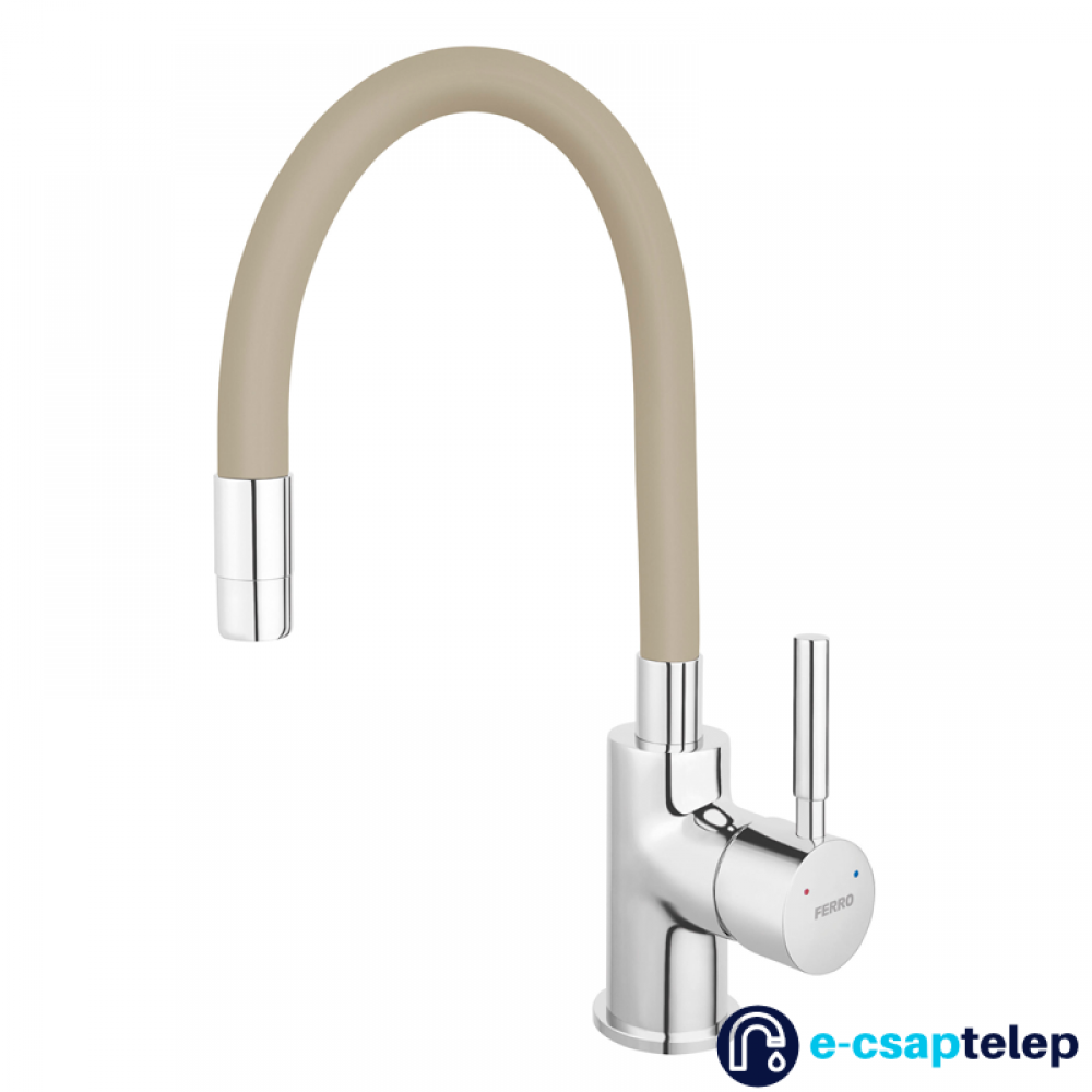 Zumba króm konyhai csaptelep, elasztikus bézs kifolyóval
